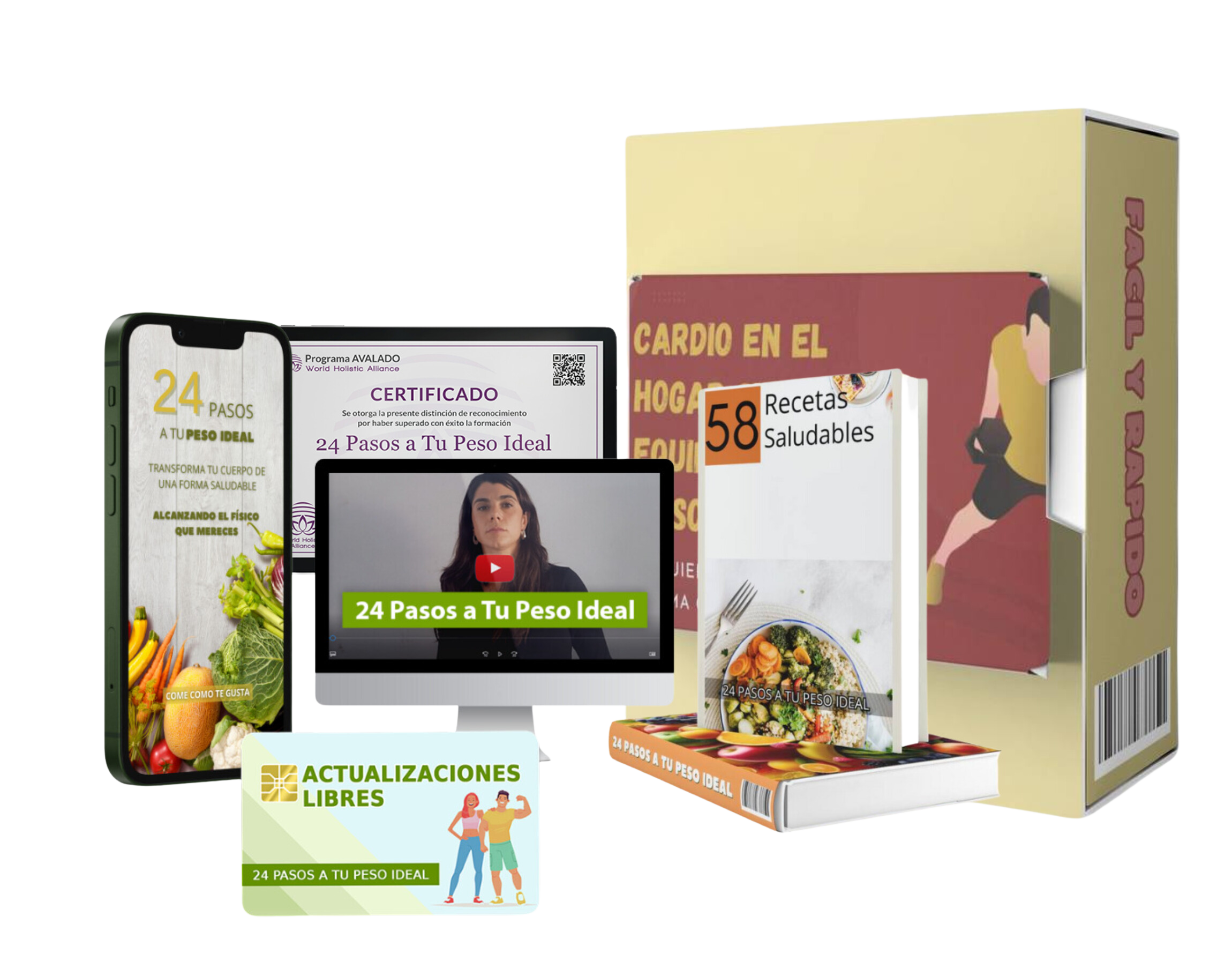 ¡Transfórmate con nuestro curso exclusivo! Accede a más de 9 módulos con guías y coaching personalizado🚀 paso a paso. Disfruta de videos en alta definición y guías PDF con más de 40 recetas variadas para cada día. Acceso de por vida con un solo pago.